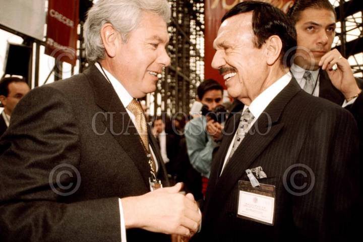 Carlos Slim, dueño de TELMEX y Roberto González Barrera, dueño de Banorte, durante la celebración de los 100 años de la institucion bancaria más fuente del país, Banorte. Foto: Germán Romero/Cuartoscuro