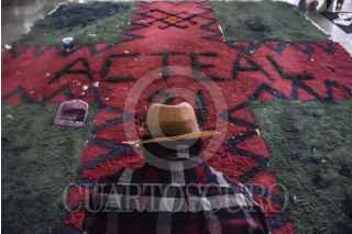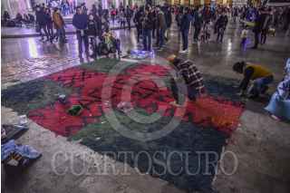 CIUDAD DE MÉXICO, 22DICIEMBRE2018.- Personas de organizaciones sociales colocaron un tapiz de aserrín en la explanada de Bellas Artes en conmemoración del 21 aniversario de "La Matanza de Acteal". FOTO: MARIO JASSO /CUARTOSCURO.COM