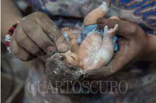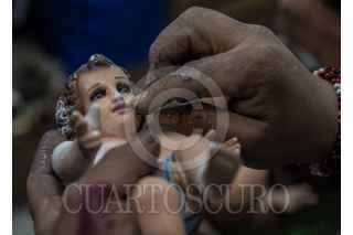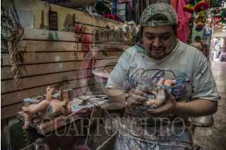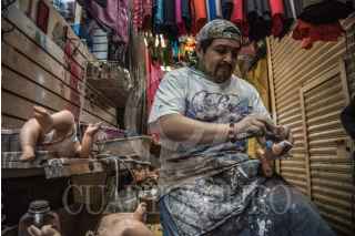 CIUDAD DE MÉXICO, 24DICIEMBRE2018.- Un trabajor del mercado de la Merced, se apresura en sus entregas de restauración y reparación de niños dios, en el día de la víspera de navidad. FOTO: MARIO JASSO /CUARTOSCURO.COM