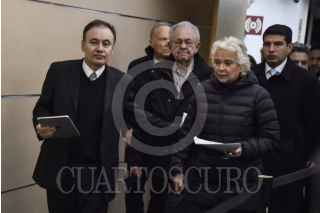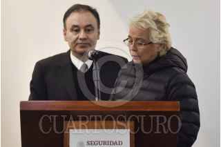CIUDAD DE MÉXICO, 24DICIEMBRE2018.- Alfonso Durazo Montaño, secretario de Protección Ciudadana; Olga Sánchez Cordero; secretario de Seguridad Pública; Javier Jiménez Espriú, secretario de Comunicaciones y Transporte; Alejandro Gertz Manero, encargado del despacho de la Procuraduría General de la República, ofrecieron esta noche conferencia de prensa con motivo del fallecimiento de la gobernadora de Puebla, Martha Érika Alonso Hidalgo, y del senador Rafael Moreno Valle, ocurrido esta tarde en el municipio de Huejotzingo, estado de Puebla, a consecuencia de un accidente aéreo. FOTO: MARIO JASSO /CUARTOSCURO.COM