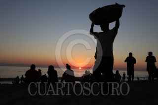 ACAPULCO, GUERRERO, 26DICIEMBRE2018.- Turistas, vendedores y pobladores de las playas de Pie de la Cuesta miraron un hermoso atardecer donde el cielo se ilumino de rojo. FOTO: BERNANDINO HERNÁNDEZ /CUARTOSCURO.COM