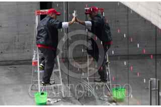 CIUDAD DE MÉXICO, 28DICIEMBRE2018.- Un trabajador limpia los vidrios del Centro de Cultura Digital, ubicado en el basamento de la Estela de Luz. FOTO: MOISÉS PABLO /CUARTOSCURO.COM