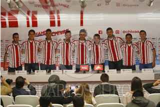 ZAPOPAN, JALISCO, 28DICIEMBRE2018.- Nueve Refuerzos fueron los que presento este medio día en las instalaciones del Estadio Akron, el equipo de las Chivas de Guadalajara a cargo de su Director Deportivo Mariano Varela y el Director Técnico José Saturnino Cardozo, esto de cara al Torneo Clausura 2019 de la Liga MX. FOTO: FERNANDO CARRANZA GARCIA / CUARTOSCURO.COM