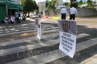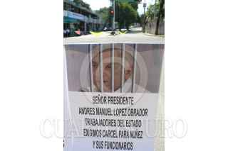 VILLAHERMOSA, TABASCO, 28DICIEMBRE2018.- Trabajadores del IFORTAB bloquean la avenida Francisco Javier Mina y Paseo Tabasco en la colonia Centro, para que les pague sus aguinaldos, los inconformes exhibieron en cartulinas la imagen del gobernador Arturo Núñez Jiménez a quien responsabilizan de esta falta de pago a esta prestación y otras que les adeudan. FOTO: EDGAR JASSO /CUARTOSCURO.COM