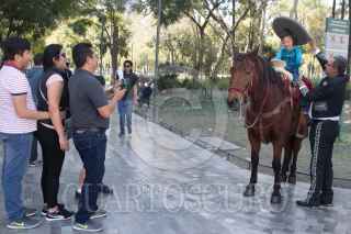 CIUDAD DE MÉXICO, 29DICIEMBRE2018.- Para el disfrute de los capitalinos que pasean por la Alameda Central regresó la Policía Charra, elementos policíacos vestidos de charros que andan a caballo en funciones de vigilancia, muchos niños aprovechan para tomarse la foto del recuerdo. FOTO: MOISÉS PABLO /CUARTOSCURO.COM