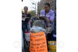 CIUDAD DE MÉXICO, 29DICIEMBRE2018.- Vendedores de comida y artesanías de diferentes comunidades indígenas radicadas en la ciudad ofrecen sus mercancías a un costado del Antiguo Palacio del Ayuntamiento, en sus puestos están han colocado pancartas en las que exigen se les permita llevar acabo su actividad comercial, ya que denuncia en días pasados han sido retirados con violencia por parte de elementos de la Secretaría de Seguridad Pública. FOTO: MOISÉS PABLO /CUARTOSCURO.COM