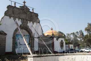 CIUDAD DE MÉXICO, 30DICIEMBRE2018.- El templo a San Juan Diego continua en obra negra, ubicado en avenida Montevideo casi esquina con Insurgentes, a unos metros de la Basílica de Guadalupe, tras la canonización del ahora Santo Juan Diego por parte del Vaticano hace ya casi 16 años autoridades capitalinas y eclesiásticas habían anunciado con bombo y platillos su recuperación, hoy su fachada luce apuntalada con unas vigas y su explanada sirve de estacionamiento. FOTO: MOISÉS PABLO /CUARTOSCURO.COM