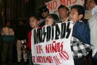 México, D.F., 28JUNIO2004.- Niños se manifiestan a favor de Andrés Manuel López Obrador, afuera del Palacio del Ayuntamiento. FOTO: Moisés Pablo/CUARTOSCURO.COM