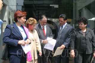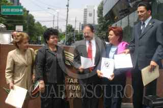 México, D.F. 28 JUNIO 2004.- Los senadores priístas, Noemi Guzman, Yolanda Eugenia González, Joaquin Cisneros, Oscar Cantón y Martha Sofia Tamayo, luego de presentar documentación que prueba relación entre la fundación Vamos México de Marta Sahagún de Fox y Laura Valdes, titular de la Loteria Nacional, en la secretaria de la Funcion Pública. FOTO: Sandra Perdomo/CUARTOSCURO.COM