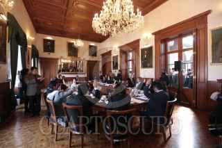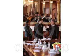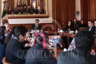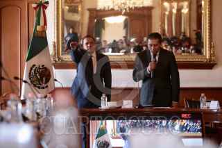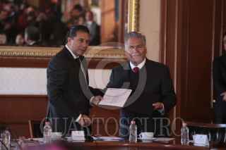 TOLUCA, ESTADO DE MÉXICO, 01ENERO2019.- Durante sesión de Cabildo en Toluca se realizó la entrega recepción del presidente municipal saliente Fernando Zamora y el presidenti municipal entrante Juan Rodolfo Sánchez Gomez para el periodo 2019-2021; Ricardo Moreno Bastida tomó protesta como Secretario del Ayuntamiento, y se indicó que una de las primeras tareas de esta administración será el bacheo en la cuidad. FOTO: ARTEMIO GUERRA BAZ /CUARTOSCURO.COM