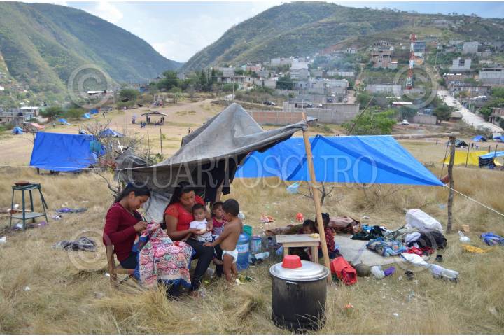 TLAPA, GUERRERO, 04ENERO2019.- Alrededor de 152 familias del municipio de Cochoapa el Grande que se dedicaban a la siembra de amapola se desplazaron de sus comunidades debido a que las ventas de la planta, que es su principal sustento, bajaron. El grupo se asentó en un terreno baldío de la ciudad de Tlapa, para exigir que gobierno estatal y federal brinde atención rápida a las familias indígenas. Las familias de La Montaña de Guerrero se mantienen de la siembra de amapola y de los envíos de dinero por parte de familiares empleados en los campos agrícolas del norte del país. Ante la baja en la venta y cotización de la planta, se vieron obligadas a migrar para huir de la pobreza extrema. Algunas familias han denunciado que sus ingresos son de 2 mil pesos anuales en promedio. Los desplazados son originarios de Tierra Blanquita, San Lucas, San Cristobalito, Llano de la Piedra, San Miguel el Nuevo, San Rafael, Llano del Metate y Rancho San Marcos, comunidades que –de acuerdo con el Inegi– tienen los indicadores de pobreza más altos de México, 56% de su población es analfabeta; 74% no es derechohabiente de algún sistema de salud, y 80% no cuenta en escusado o drenaje.Más de 500 personas, entre adultos y niños, permanecen en el campamento en la colonia Las Mesas. Ahí, con palos, cobijas y lonas, construyeron pequeños refugios para resguardarse de la lluvia, el calor y el frío. Las familias aseguran que prefieren morir en la ciudad de Tlapa que regresar a sus pueblos con mucho más dolor y soledad, asegurando que en sus lugares de origen no existe futuro para nadie. FOTO: YAOTL SILVA /CUARTOSCURO.COM