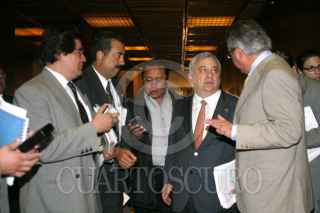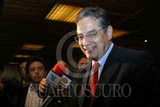 México, D.F. 29 JUNIO 29 2004.- Emilio Chuayffett, coordinador de la bancada del priísta siendo entrevistado por la fuente al terminar la reunión privada que sostuvo el grupo parlamentario. FOTO: Sandra Perdomo/CUARTOSCURO.COM
