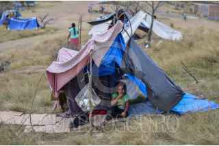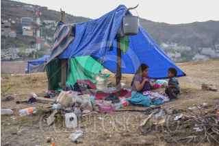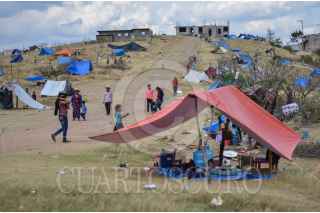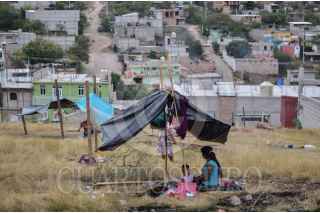 TLAPA, GUERRERO, 05ENERO2019.- Alrededor de 152 familias del municipio de Cochoapa el Grande que se dedicaban a la siembra de amapola se desplazaron de sus comunidades debido a que las ventas de la planta, que es su principal sustento, bajaron. El grupo se asentó en un terreno baldío de la ciudad de Tlapa, para exigir que gobierno estatal y federal brinde atención rápida a las familias indígenas. Las familias de La Montaña de Guerrero se mantienen de la siembra de amapola y de los envíos de dinero por parte de familiares empleados en los campos agrícolas del norte del país. Ante la baja en la venta y cotización de la planta, se vieron obligadas a migrar para huir de la pobreza extrema. Algunas familias han denunciado que sus ingresos son de 2 mil pesos anuales en promedio. Los desplazados son originarios de Tierra Blanquita, San Lucas, San Cristobalito, Llano de la Piedra, San Miguel el Nuevo, San Rafael, Llano del Metate y Rancho San Marcos, comunidades que –de acuerdo con el Inegi– tienen los indicadores de pobreza más altos de México, 56% de su población es analfabeta; 74% no es derechohabiente de algún sistema de salud, y 80% no cuenta en escusado o drenaje.Más de 500 personas, entre adultos y niños, permanecen en el campamento en la colonia Las Mesas. Ahí, con palos, cobijas y lonas, construyeron pequeños refugios para resguardarse de la lluvia, el calor y el frío. Las familias aseguran que prefieren morir en la ciudad de Tlapa que regresar a sus pueblos con mucho más dolor y soledad, asegurando que en sus lugares de origen no existe futuro para nadie. FOTO: YAOTL SILVA /CUARTOSCURO.COM