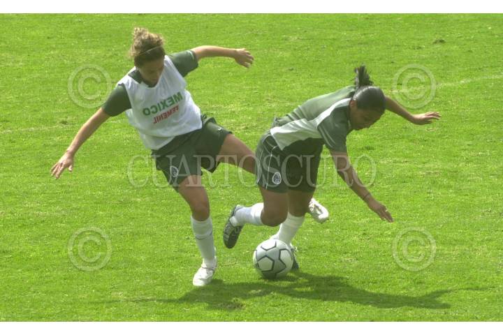 MEXDF29JUNIO2004.- La Selección Nacional Mexicana Femenil de Fultbol Soccer entreno en el Centro Pegaso como parte de su preparación para la los juegos olimpicos en Atenas 2004. FOTO: Eunice Adorno/CUARTOSCURO.COM