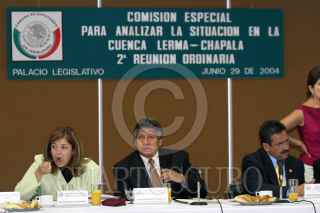 México, D.F. 29 JUNIO 2004.- Los integrantes de la comisión especial para analizar la situación en la cuenca Lerma-Chapala, Jaqueline Arguelles, Alejandro Saldaña y Roberto Marruto Torres en reunión de trabajo donde trataron el tema del agua potable. FOTO: Sandra Perdomo/CUARTOSCURO.COM