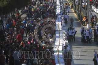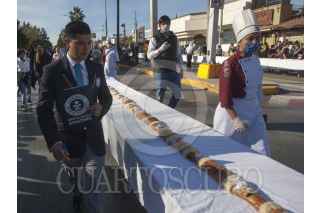 SALTILLO, COAHUILA, 06ENERO2019.- Estudiantes de Gastronomía rompieron el récord mundial Guinness en la elaboración de la rosca de reyes mas larga del mundo, la cual logró alcanzar 2064.43 metros, el anterior récord le pertenecía a Suiza. FOTO: GABRIELA PÉREZ MONTIEL /CUARTOSCURO.COM