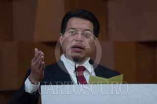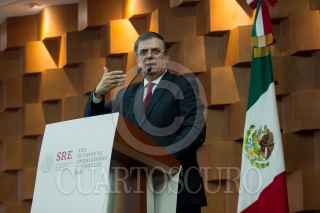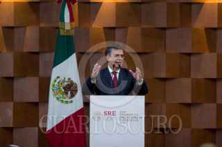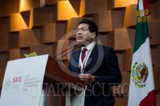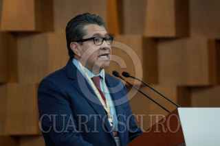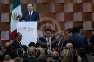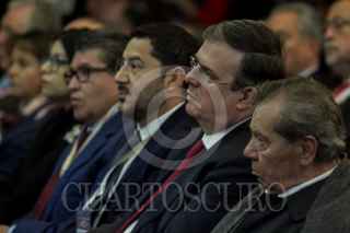 CIUDAD DE MÉXICO, 07ENERO2019- Ricardo Monreal, presidente de la Junta de Coordinación Política (Jucopo) del Senado; Martí Batres Guadarrama, presidente del Senado; Marcelo Ebrard, secretario de Relaciones Exteriores, y Porfirio Muñoz Ledo, presidente de la Cámara de Diputados, durante la inauguración de la XXX Reunión de Cónsules y Embajadores en la Secretaria de Relaciones Exteriores. FOTO: GALO CAÑAS /CUARTOSCURO.COM