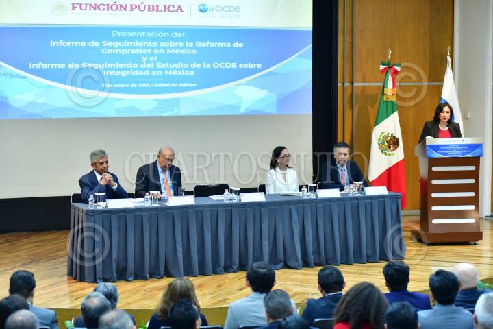 CIUDAD DE MÉXICO, 07ENERO2019.- José Ángel Gurría, secretario general de la Organización para la Cooperación y el Desarrollo Económico (OCDE), presentó el "Informe de seguimiento del estudio de la OCDE sobre integridad en México", en las instalaciones de la Secretaría de la Función Pública, con la presencia de la titular de la dependencia, Irma Eréndira Sandoval Ballesteros. FOTO: CUARTOSCURO.COM