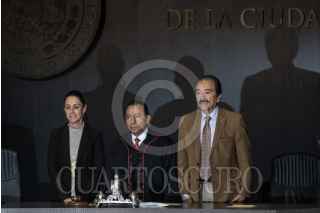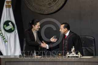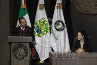 CIUDAD DE MÉXICO, 07ENERO2019.- Rafael Guerra Álvarez, tomó posesión como magistrado presidente del Tribunal Superior de Justicia de la Ciudad de México (TSJCDMX), quien además fue acompañado por Claudia Sheinbaum, Jefe de Gobierno de la capital del país y José de Jesús Martín del Campo, presidente del Congreso local. FOTO: MISAEL VALTIERRA / CUARTOSCURO.COM