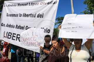 VILLAHERMOSA, TABASCO, 07ENERO2019.- Un grupo de tabasqueños se manifiestan en las afueras del edificio del Poder Judicial de la Federación, donde exigen la libertad del ex gobernador del estado Andrés Rafael Granier Melo. FOTO: EDGAR JASSO/CUARTOSCURO.COM