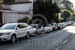 CIUDAD DE MÉXICO, 08ENERO2019.- Luego de darse a conocer que en varias estaciones de gasolina se había acabado el combustible, largas filas de automóviles se observan en algunos puntos de abastecimiento. En la imagen, una estación Hidrosina ubicada sobre la avenida Constituyentes. FOTO: MISAEL VALTIERRA /CUARTOSCURO.COM