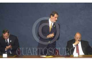 MEXDF01JULIO2004.- El presidente Vicente Fox durante la ceremonia conmemorativa del día nacional del ingeniero que se llevo a cabo en la residencia oficial de Los Pinos. FOTO: Eunice Adorno/CUARTOSCURO.COM