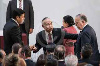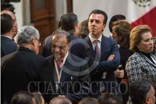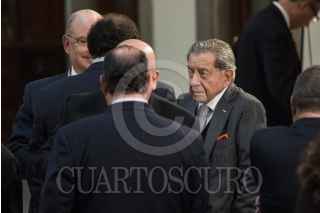 CIUDAD DE MÉXICO, 09ENERO2019.- Alfonso Romo, jefe de la Oficina de la Presidencia y Valentín Diez Morodo, empresario, durante la XXX Reunión de Embajadores y Cónsules 2019, llevado acabo en el salón Tesorería de Palacio Nacional y donde el presidente de México, Andrés Manuel López Obrador les solicitó el apoyo para la promoción del país en el extranjero. FOTO: MISAEL VALTIERRA / CUARTOSCURO.COM