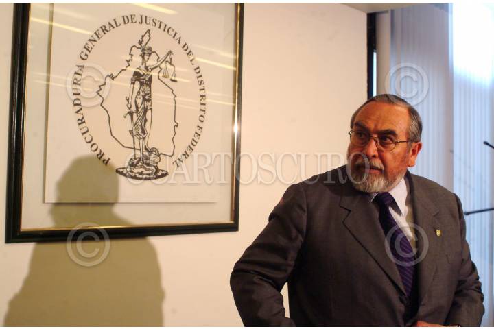 MEXICO, D. F. 01JULIO204.- Bernardo Bátiz, procurador de justicia capitalino, a su llegada a una conferencia de prensa en las oficinas de la PGJ donde anunció la captura de dos presuntos secuestradores. FOTO: Iván Stephens/CUARTOSCURO.COM
