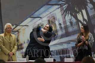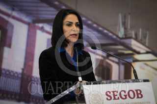 CIUDAD DE MÉXICO, 10ENERO2018.- La periodista Lydia Cacho, durante la ceremonia en la cual el Estado Mexicano le pidió una disculpa, por la violación de sus derechos humanos cuando fue arrestada tras la publicación de su libro "Los demonios del edén, en la ciudad de Cancún, Quintana Roo, en donde es señalado del crimen de pederastía el empresario Jesús Succar Kuri y sus nexos con diferentes actores de la política mexicana. FOTO: ANDREA MURCIA /CUARTOSCURO.COM