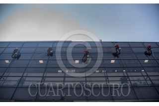 CIUDAD DE MÉXICO, 10ENERO2019.- Trabajadores realizan limpieza de los cristales que conforman la fachada del edificio G, del Palacio Legislativo de San Lázaro. FOTO: MARIO JASSO /CUARTOSCURO.COM