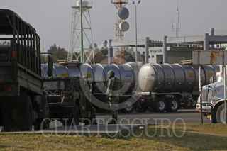EL SALTO, JALISCO, 10ENERO2019.- Personal de Secretaria de la Defensa Nacional (SEDENA), resguardan las instalaciones de la Planta de Almacenamiento y Reparto TAD El Castillo ubicada en ya mencionado municipio metropolitano. FOTO: FERNANDO CARRANZA GARCIA / CUARTOSCURO.COM