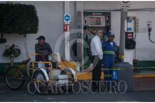CIUDAD DE MÉXICO, 11ENERO2019.- En varias gasolineras de la Ciudad, comienzan a permitir vender en bidones, esto por la afluencia que provoca trafico y caos vial. En la imagen aspectos de personas que llegan con bidones esperando el reabastecimiento de hidrocarburos en la gasolinera ubicado a las afueras del metro Mixiuhca. FOTO: ANDREA MURCIA /CUARTOSCURO.COM