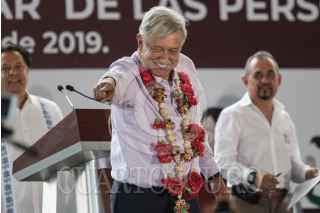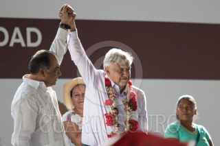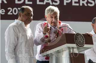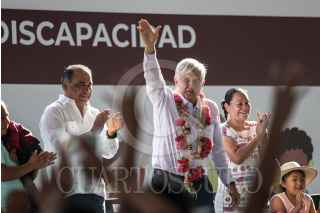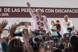 TLAPA DE COMONFORT, GUERRERO, 11ENERO2018.- Decenas de personas se dieron cita al arranque del programa de "Pensión para el Bienestar de las Personas con Discapacidad", encabezado por Andrés Manuel López Obrador, presidente de México. FOTO: MISAEL VALTIERRA / CUARTOSCURO.COM