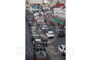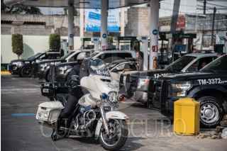 NAUCALPAN DE JUÁREZ, ESTADO DE MÉXICO, 12ENERO2019.- Decenas de unidades de la Policía Municipal de esta entidad, permanecieron formadas por varias horas para poder abastecerse de combustible en una gasolinera ubicada entre los límites del Estado de México y la capital del País. A su vez, personas continúan asistiendo con la esperanza de que les puedan despachar gasolina en bidones. FOTO: MARIO JASSO /CUARTOSCURO.COM