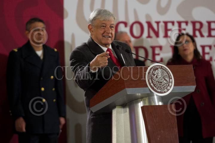 CIUDAD DE MÉXICO, 14ENERO2019.- Andrés Manuel López Obrador, presidente de México, durante la conferencia mañanera para informar sobre el avance de la estrategia contra el robo de hidrocarburos en el país. FOTO: GALO CAÑAS /CUARTOSCURO.COM