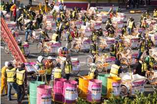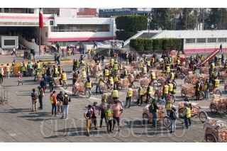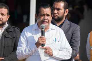 NEZAHUALCÓYOTL, ESTADO DE MÉXICO, 15ENERO2019.- Juan Hugo de la Rosa, presidente municipal de Nezahualcóyotl, como medida mientras se regulariza el abastecimiento de combustible en las gasolineras, presentó esta mañana el programa de recolección de basura a cargo de 150 bicicletas y 10 carritos con tambos que recorrerá diariamente por cuadrantes el estado. En el cual se generan alrededor de 1,200 toneladas, afirmó De la Rosa. También se dio detalles sobre las 44 estaciones que existen y que estuvieron cerradas y de las cuales hoy ya cuentan con un servicio regular 20 de ellas. FOTO: ANDREA MURCIA /CUARTOSCURO.COM