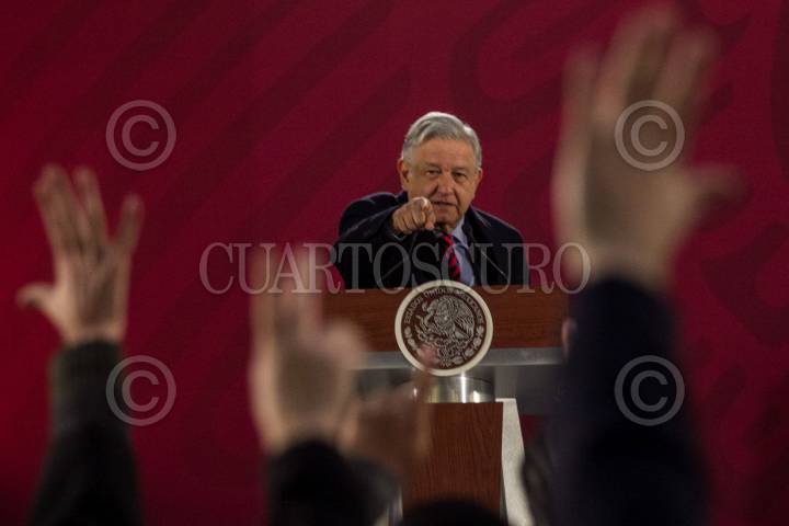 CIUDAD DE MÉXICO, 16ENERO2019.- Rafael Ojeda, secretario de Marina; Andrés Manuel López Obrador, presidente de México; Luis Cresencio Sandoval, secretario de la Defensa Nacional; Rocío Nahle, secretaria de Energía, y Ricardo Peralta Saucedo, titular de Administración General de Aduanas y de Comercio Exterior, durante su conferencia de prensa mañanera para dar de los avances y estrategias en operación para evitar el robo de hidrocarburos. FOTO: GALO CAÑAS /CUARTOSCURO.COM