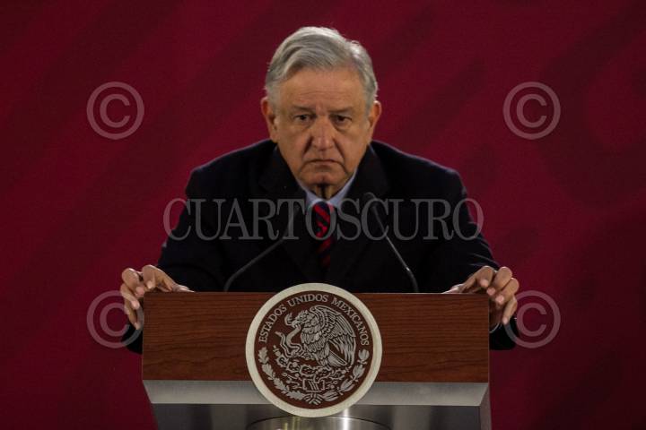 CIUDAD DE MÉXICO, 16ENERO2019.- Rafael Ojeda, secretario de Marina; Andrés Manuel López Obrador, presidente de México; Luis Cresencio Sandoval, secretario de la Defensa Nacional; Rocío Nahle, secretaria de Energía, y Ricardo Peralta Saucedo, titular de Administración General de Aduanas y de Comercio Exterior, durante su conferencia de prensa mañanera para dar de los avances y estrategias en operación para evitar el robo de hidrocarburos. FOTO: GALO CAÑAS /CUARTOSCURO.COM