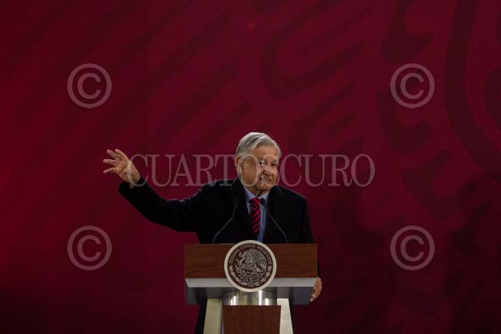 CIUDAD DE MÉXICO, 16ENERO2019.- Rafael Ojeda, secretario de Marina; Andrés Manuel López Obrador, presidente de México; Luis Cresencio Sandoval, secretario de la Defensa Nacional; Rocío Nahle, secretaria de Energía, y Ricardo Peralta Saucedo, titular de Administración General de Aduanas y de Comercio Exterior, durante su conferencia de prensa mañanera para dar de los avances y estrategias en operación para evitar el robo de hidrocarburos. FOTO: GALO CAÑAS /CUARTOSCURO.COM