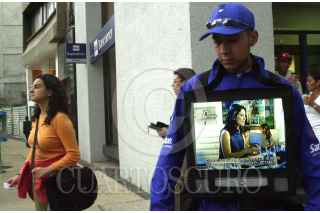 MEXDF03JULIO2004.- En la avenida reforma una empresa farmaceutica aprovecha lo ùltimo de la tecnología para mostrar su producto. Un monitor portatil se convierte en la última inovación tecnologica para los anunciantes. FOTO: Eunice Adorno/CUARTOSCURO.COM