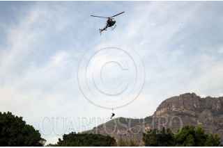 TEPOZTLÁN, MORELOS, 16ENERO2019.- Después de 36 horas fue rescatado el ciudadano alemán que cayó de un sendero a un peñasco en la serranía de este municipio. “¡Viva México!” Fue lo que expreso el alemán al estar en la ambulancia. El reporte a los servicios de emergencia lo realizó la esposa de la víctima ayer por la mañana. Elementos de la Cruz Roja y de la Policía Morelos, con ayuda de un helicóptero, rescataron al hombre que tenía lesiones en la cara y extremidades inferiores. El ciudadano alemán fue trasladado a un hospital para su valoración médica. FOTO: MARGARITO PÉREZ RETANA /CUARTOSCURO.COM