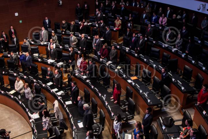 CIUDAD DE MÉXICO, 16ENERO2019.- Miguel Ángel Osorio Chong, senador priista, conversa con su homólogo Eruviel Ávila durante la primer sesión del periodo extraordinario del pleno del Senado de la República. FOTO: GALO CAÑAS /CUARTOSCURO.COM
