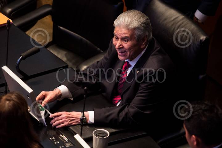 CIUDAD DE MÉXICO, 16ENERO2019.- Miguel Ángel Osorio Chong, senador priista, conversa con su homólogo Eruviel Ávila durante la primer sesión del periodo extraordinario del pleno del Senado de la República. FOTO: GALO CAÑAS /CUARTOSCURO.COM