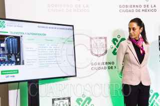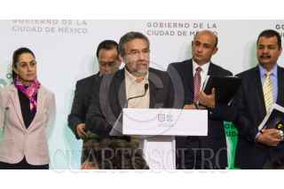 CIUDAD DE MÉXICO, 17ENERO2019.- Claudia Sheinbaum, jefa del Gobierno de la Ciudad, acompañada de Rafael Bernardo Carmona Paredes, director de Sistema de Agua de la capital, en la conferencia de esta mañana, en el H. Palacio del Ayuntamiento. FOTO: VICTORIA VALTIERRA /CUARTOSCURO.COM