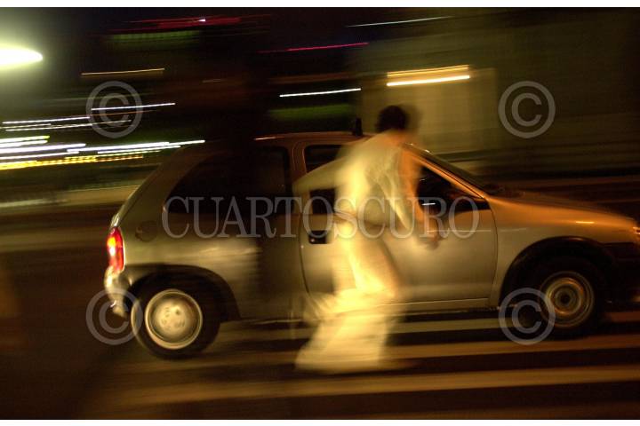 MEXDF10JULIO2004.- Un mariachi corre detras de un coche en el Eje Central para ofrecerle sus servicios. FOTO:Eunice Adorno/CUARTOSCURO.COM