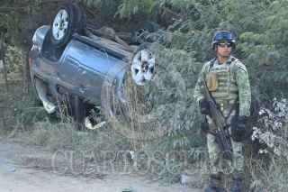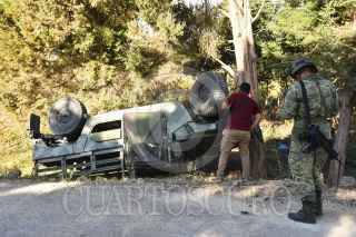 LA TRINITARIA, CHIAPAS, 18ENERO2019.- Vuelcan militares en persecución de presuntos indocumentados. Tres milatres y cuatros indocumentados lesionados fue el saldo que dejó una persecución entre militares y presuntos polleros, en el tramo carretero La Trinitaria-Carmen Xhan, donde hubo detonaciones de armas de fuego. El vehículo de los civiles también terminó volcado. FOTO: JOSÉ ANTONIO AGUILAR /CUARTOSCURO.COM