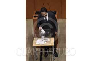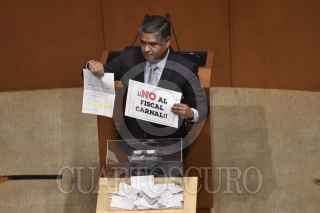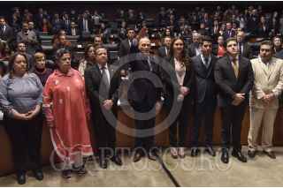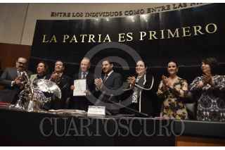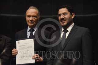 CIUDAD DE MÉXICO, 18ENERO2019.- Alejandro Gertz, fue elegido como Fiscal General de la República durante la realización de s lleva a cabo la Sesión Extraordinaria en la Cámara de Senadores. En la imagen, Ricardo Monreal, coordinador de Morena en el senado, felicita a Alejandro Gertz. FOTO: MARIO JASSO /CUARTOSCURO.COM