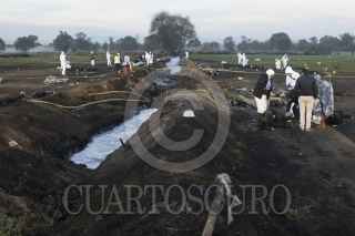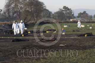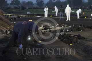 TLAHUELILPAN, HIDALGO, 19ENERO2019.- Peritos y militares trabajan en la zona de la comunidad de San Primitivo, donde el día viernes se reportó una explosión en una toma clandestina de combustible, hasta el momento se reportan 66 personas muertas y más de 70 lesionados. FOTO: MOISÉS PABLO /CUARTOSCURO.COM