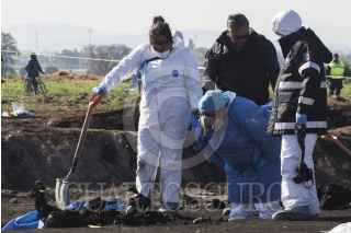 TLAHUELILPAN, HIDALGO, 19ENERO2019.- Peritos y militares trabajan en la zona de la comunidad de San Primitivo, donde el día viernes se reportó una explosión en una toma clandestina de combustible, hasta el momento se reportan 66 personas muertas y más de 70 lesionados. FOTO: MOISÉS PABLO /CUARTOSCURO.COM