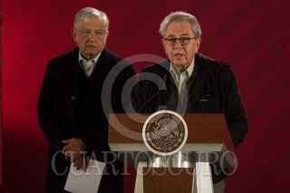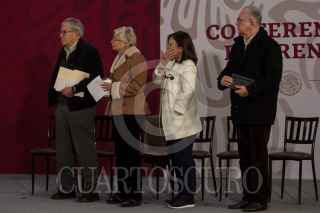 CIUDAD DE MÉXICO, 20ENERO2019.- Jorge Alcocer, secretario de Salud; Olga Sánchez Cordero, secretaria de Gobernación; Rocío Nahle, secretaria de Energía, y Javier Jiménez Espriú, secretario de Comunicaciones y Transportes, durante la conferencia mañanera del presidente Andrés Manuel López Obrador, en la que se dio informe de los avances respecto a las investigaciones, atención a víctimas y trabajos de peritaje de la explosión de un gasoducto ocurrida en Tlalhuelilpan, Hidalgo, el día de ayer. Que dejó como saldo a 76 personas fallecidas y 74 heridas. FOTO: GALO CAÑAS /CUARTOSCURO.COM